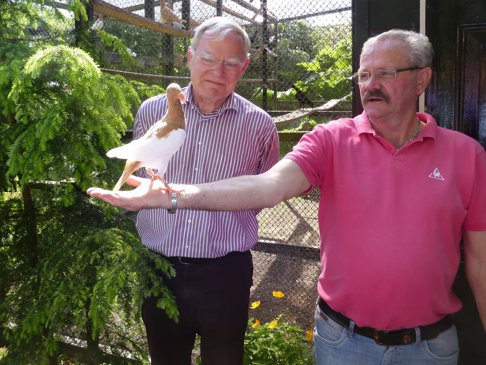 Hier een foto een fraaie jong duivin. In het archief vonden we ook nog een mooie foto uit 2014 van Geert met een veelbelovend geel geëksterd jong op zijn hand.